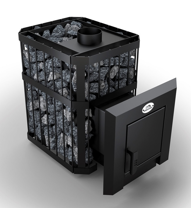 - Її головна відмітна риса — рівномірне прогрівання парильного приміщення й підтримання необхідної температури за допомогою збільшеного кол-ва нагрітих каменів до 160 кг, що закладається в сітку навколо всієї топки печі.
